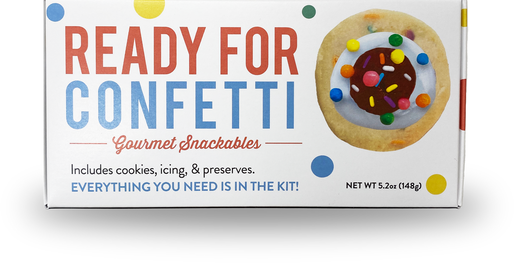 Smaller portions with the same delicious flavor. Includes our light and airy confetti cookies, icing, jam & a sprinkle topping.